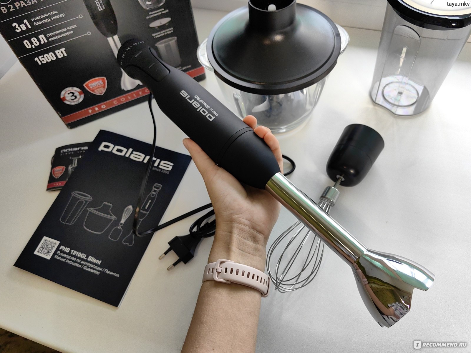 Завершающий герой списка – Polaris PHB 1517GL Silent. Не самый новый, но проверенный временем 4 в 1 блендер с технологией SilentPro (тут она впервые и появилась, напоминаю). Мощность 1500 Вт, плавный регулятор скорости (там до 25 шагов), а насадки – блендерный нож, венчик, измельчитель и насадка для картофельного пюре. Эта модель особенно любима теми, кто часто делает супы и пюре: насадка-пюрешница дает очень воздушную текстуру, и масла в масло (шутка!) не нужно добавлять.