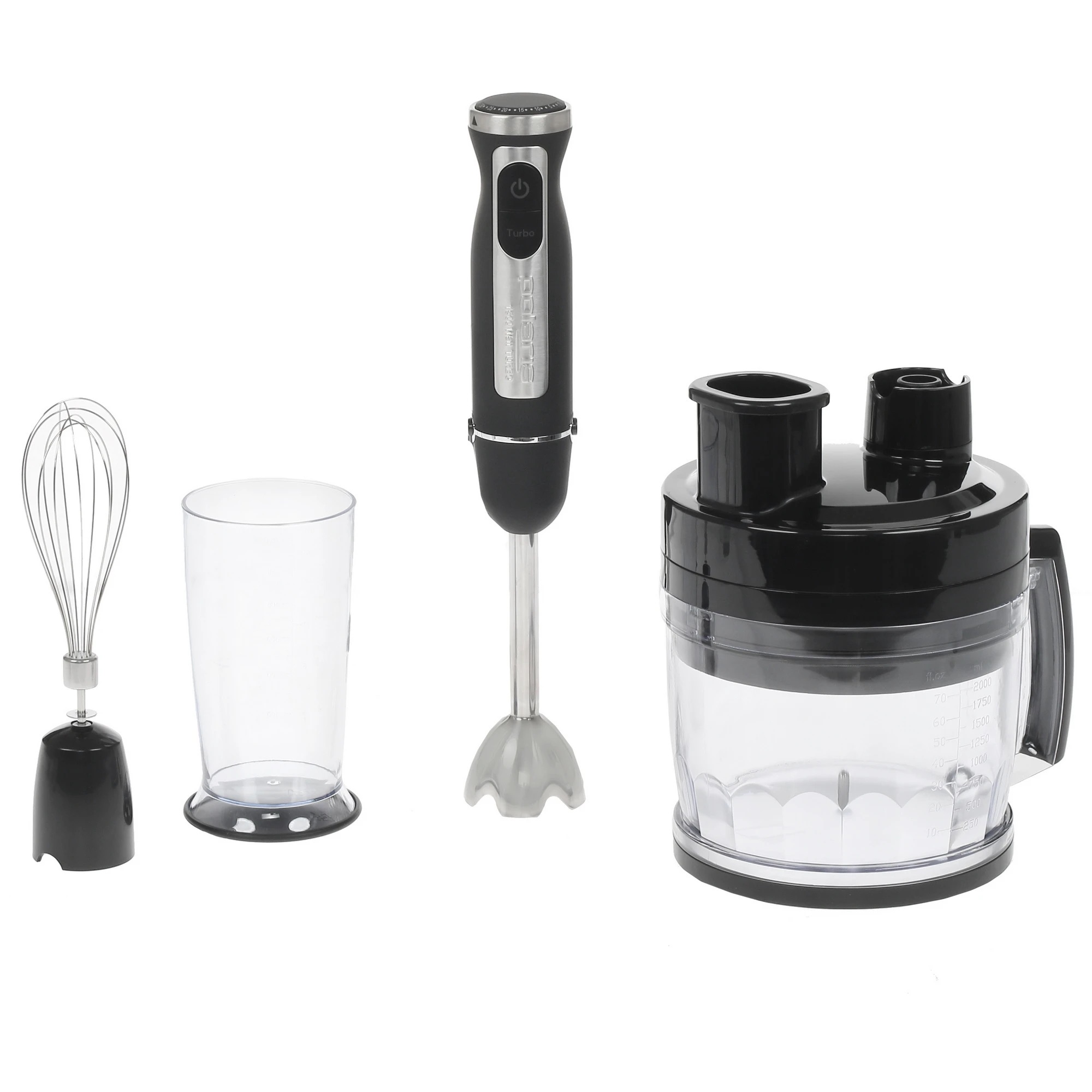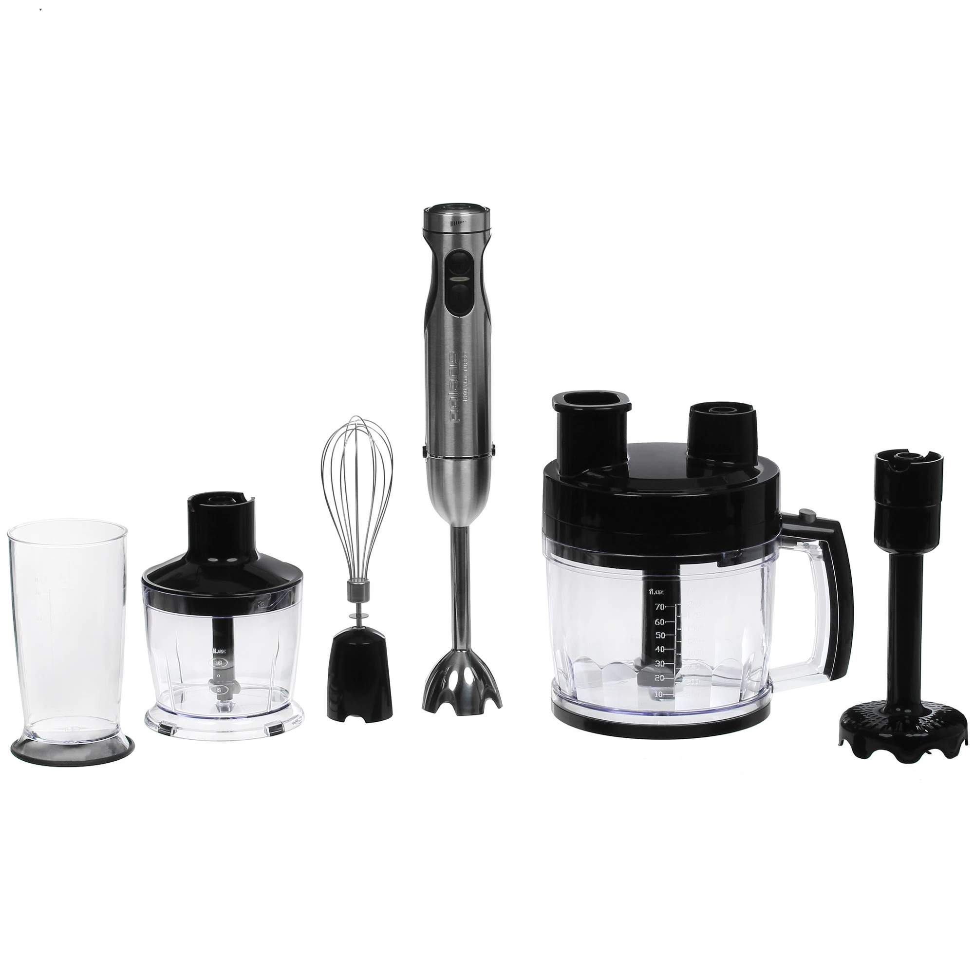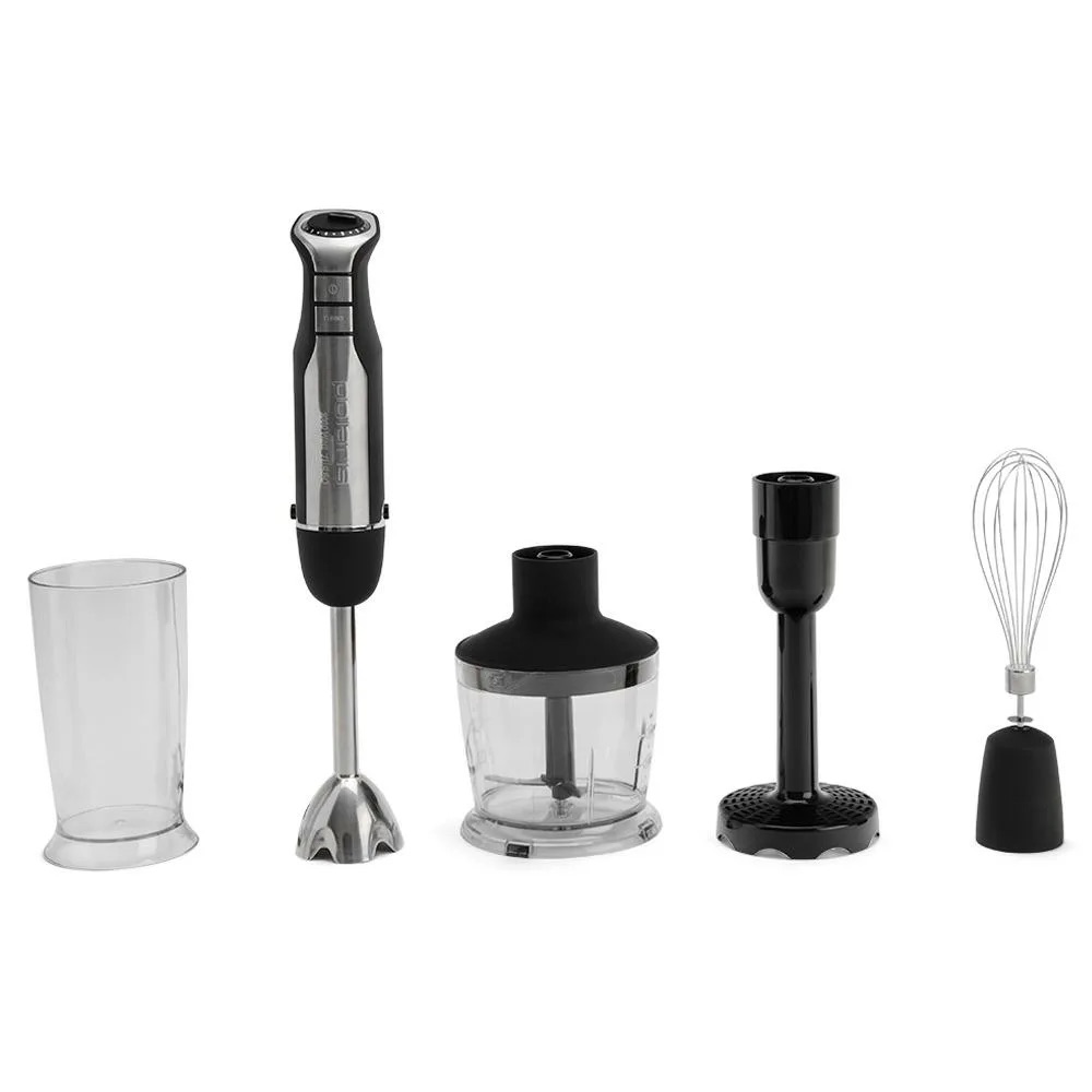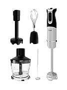 Мощный погружной блендер Polaris PHB 1594 – настоящий «троеголовый» боец кухни. Мотор 1500 Вт и 15 скоростей легко справляются даже с твердыми ингредиентами. В комплекте – прочный металлический погружной узел и насадки: венчик и измельчитель на 0.5 л (думаю, можно разогнать хоть тесто для пиццы!). Мерный стакан на 700 мл тоже в наборе. Опыт использования подсказывает: эта модель сочетает силу и компактность, за которую многие без ума. Цена: около 3000–3500 руб.