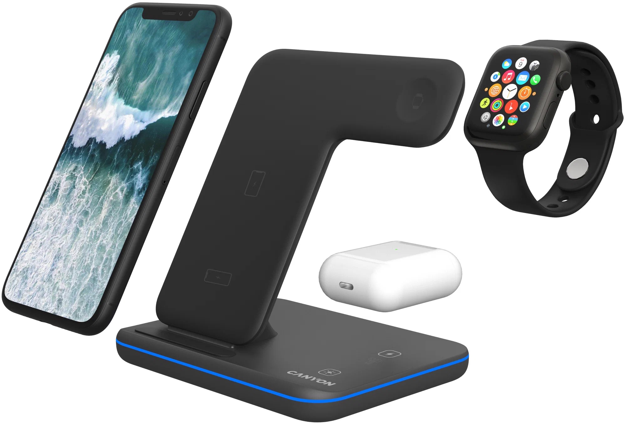 - Мощность: 15W (телефон) + 3W (часы) + 5W (наушники)