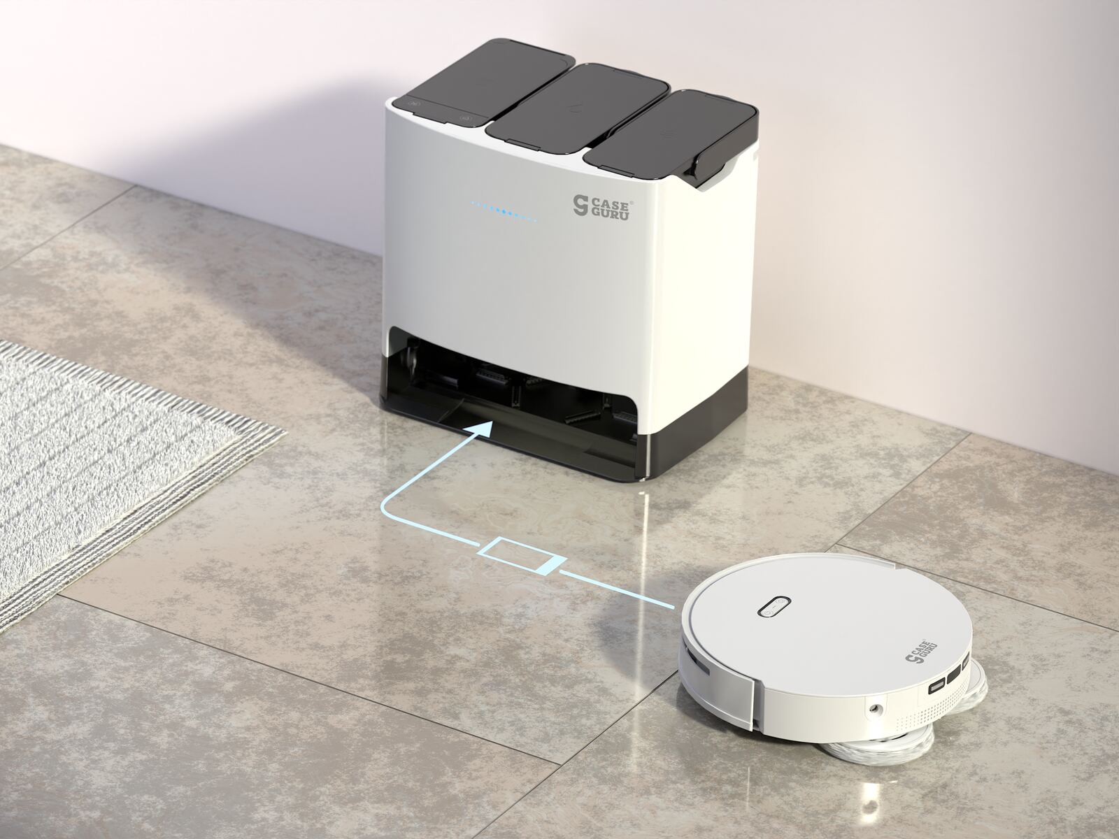 Фирменная новинка от российского бренда CaseGuru. Доступный и надёжный робот-пылесос для повседневной уборки. Имеет простую базу с функцией самоочистки и влажной уборки.