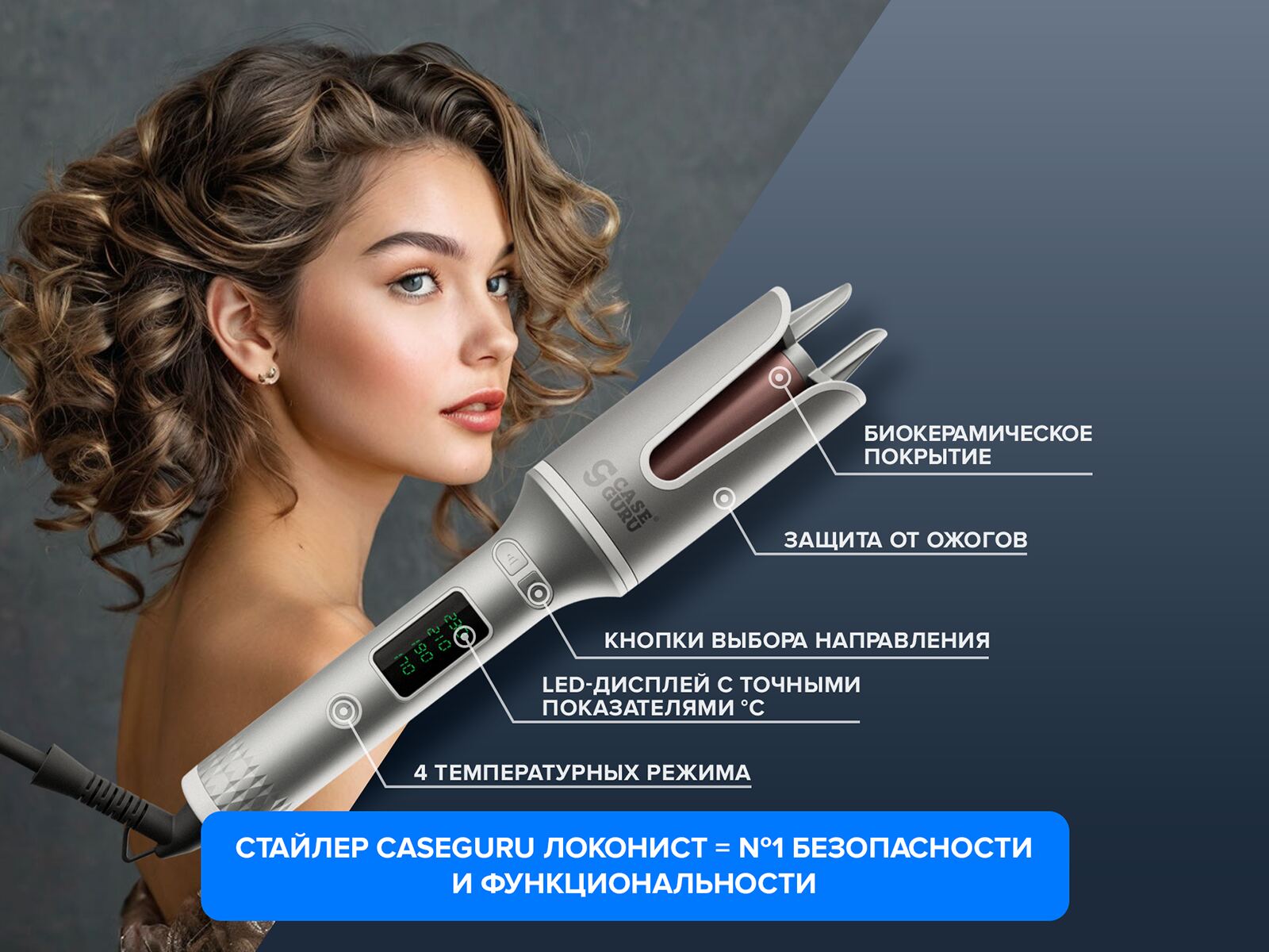 Я выбрала тюменскую фирму CaseGuru. Купила у них стайлер Локонист с автоматической завивкой. Удивилась, насколько отстала от технологий. Автоматическая завивка — это супер удобно! А главное, есть защита от ожогов!