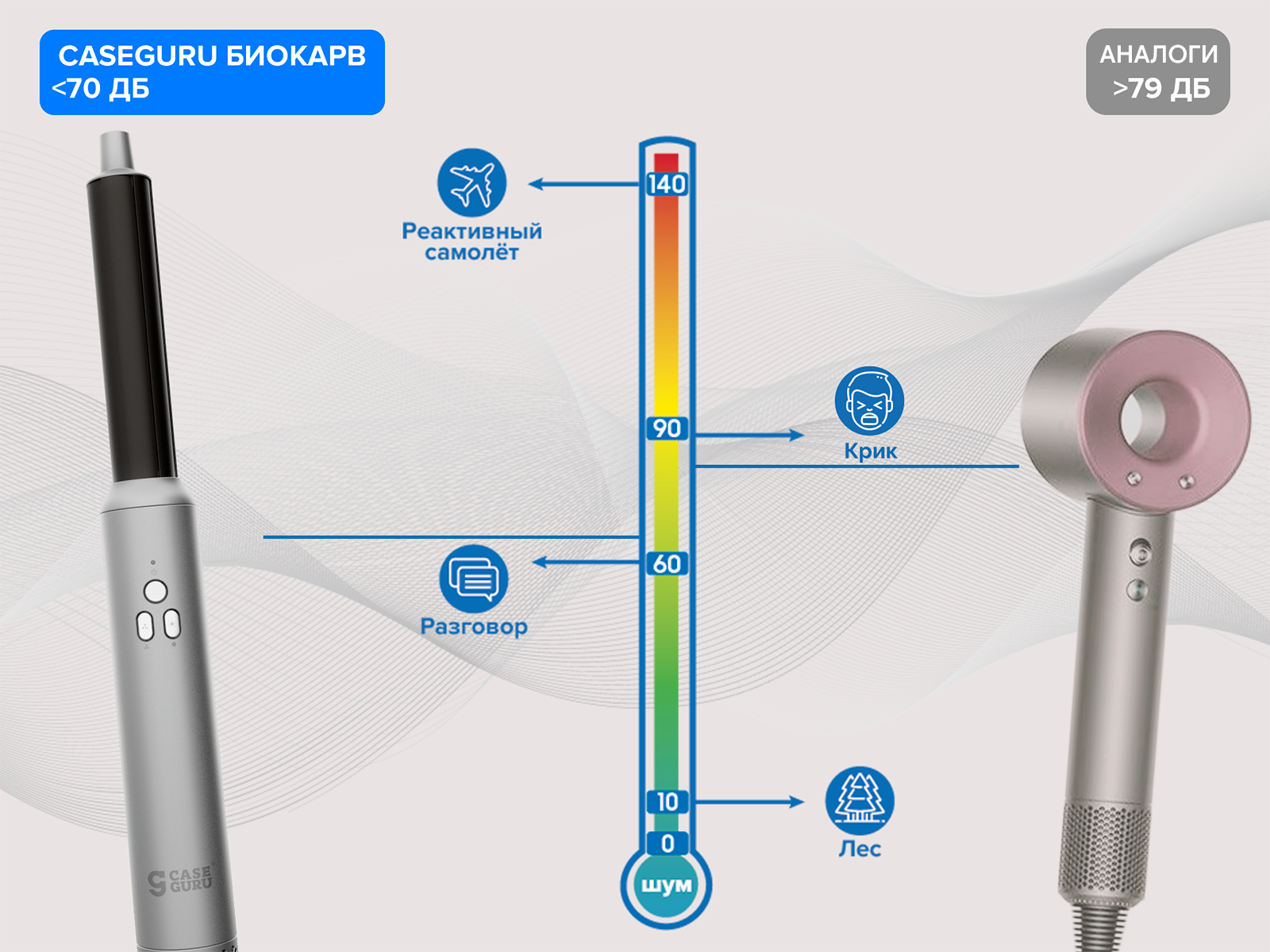 Частое мытьё головы, окрашивание и химическая завивка поднимают чешуйки волос. CaseGuru Мультифен с холодным обдувом бережёт волосы и препятствует их преждевременному старению.