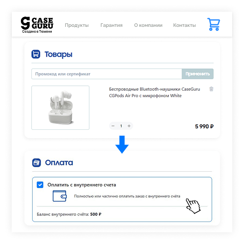 Если сумма заказа превышает доступный баланс — доплатите разницу любым удобным способом.